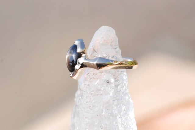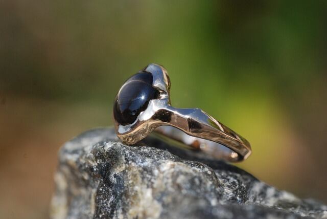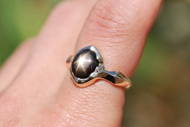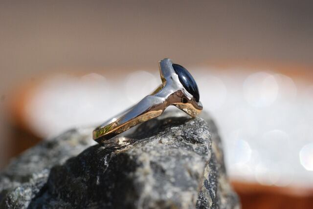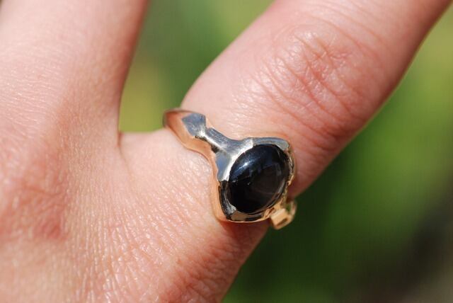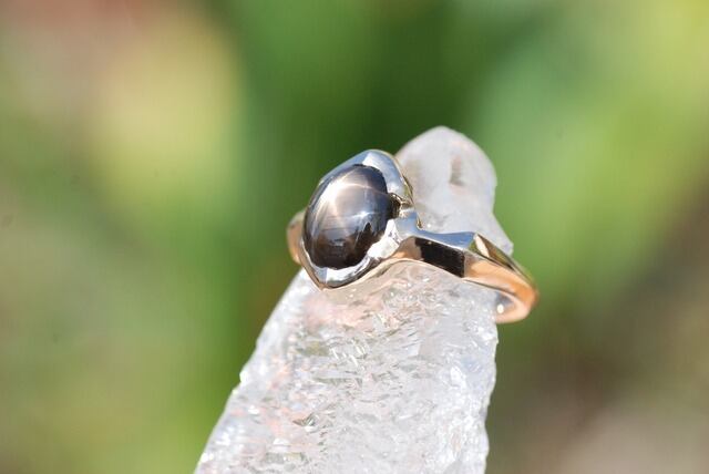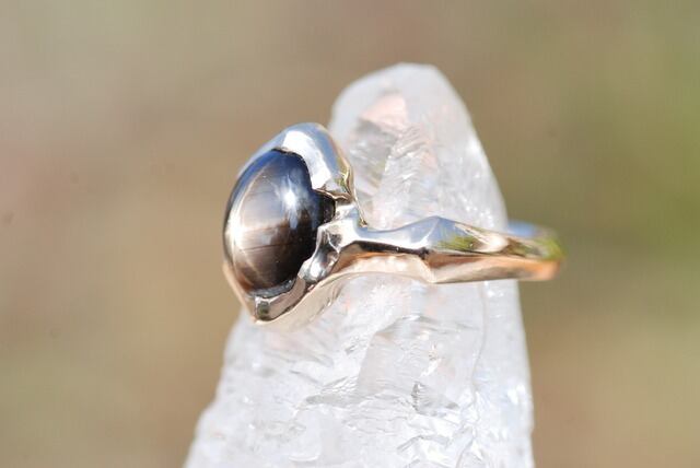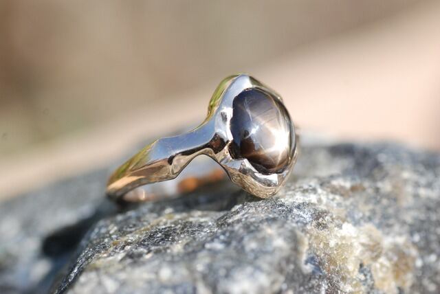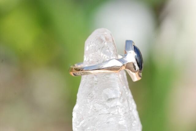 石全体に美しい自然のスターのひかりが広がるこちらのブラックサファイヤの指輪は、日々の生活に溶け込むような指に馴染む着け心地を意識し制作いたしました。