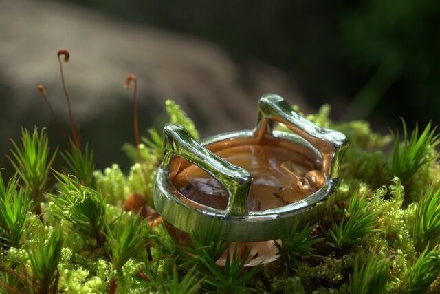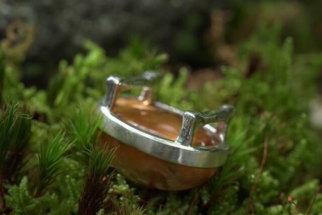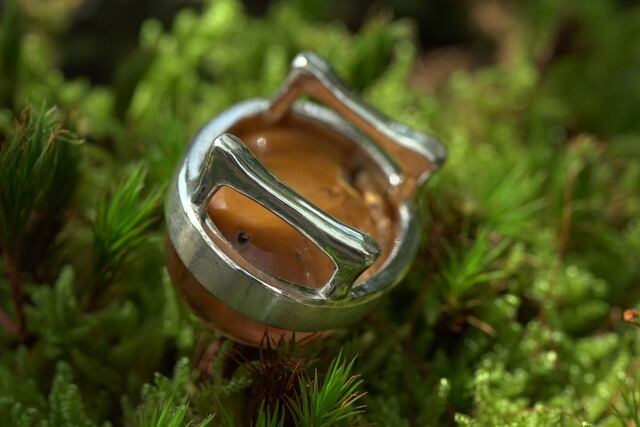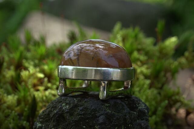 そんな個性のある石を引き立てるために金属はシンプルな覆輪留めのデザインしお仕立ていたしました。