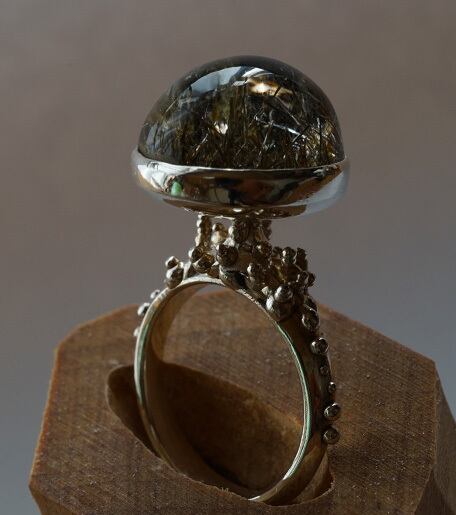 Black Tourmaline Rutilated Quartz ring with silver925. Size 9号 Art 04.